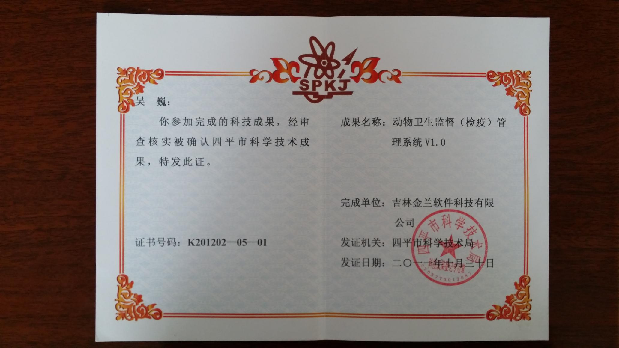 吉林省免疫無口蹄疫區(qū)檔案